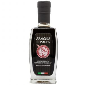 Poesia Riserva ORO: Langer dan 3 jaar rijping. door een verlengde rijping in Barrique krijgt de Balsamico een speciale stroperigheid en zoetheid zonder zijn ware karakter te verliezen. Kan prima ‘huwen’ met zowel gekookte als met rauwe gerechten, zowel met vlees of vis als met groenten